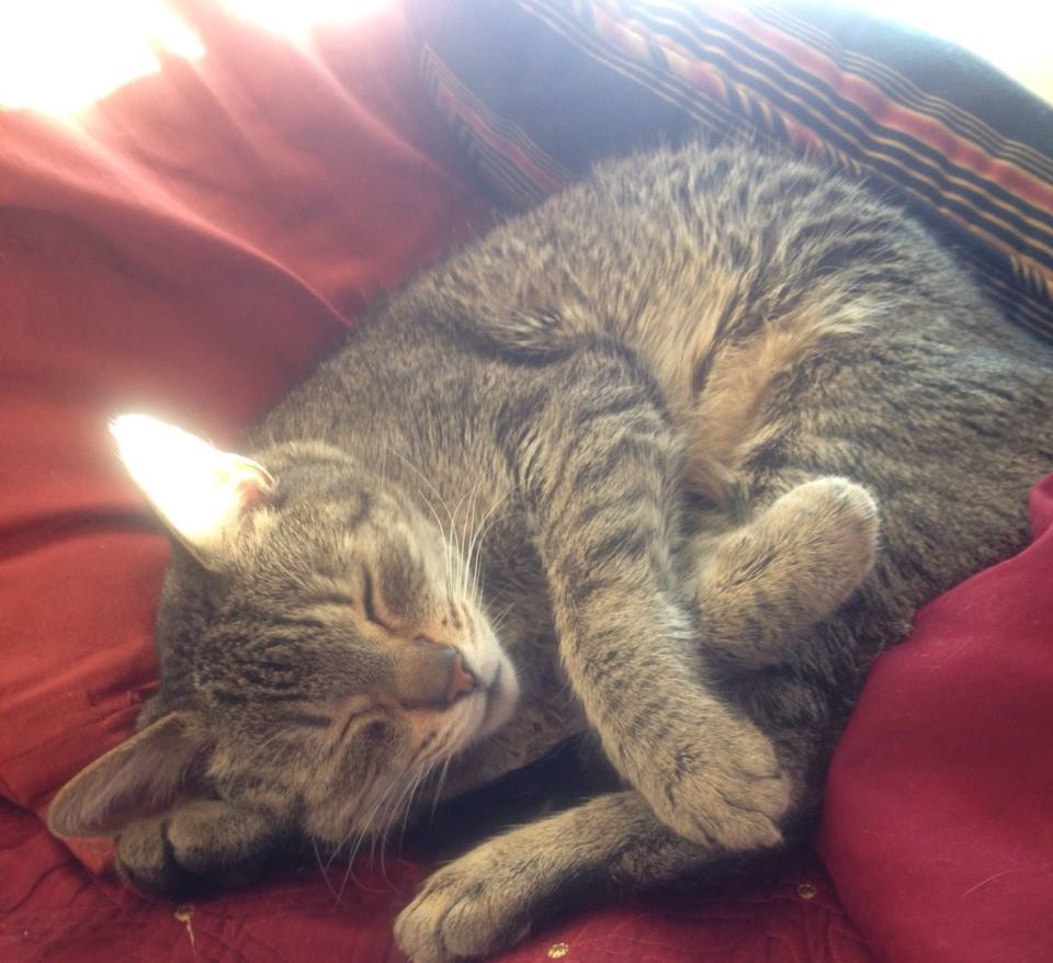If you can, I very much recommend you take a nap with Ursula every day. Even if you are not sleepy, you should lie down on your side and she will find you. From across the house, she can hear you lie down on your side, and she will be there in seconds, curling into the little hollow your body makes, her breathing belly against your breathing belly, and she will drop instantly asleep. As you lie there, feeling that warm, rising and falling ball of fur, your stress will start to ebb, and in its place will be gratitude for the little, weird, quirky, chatty agent of its removal.