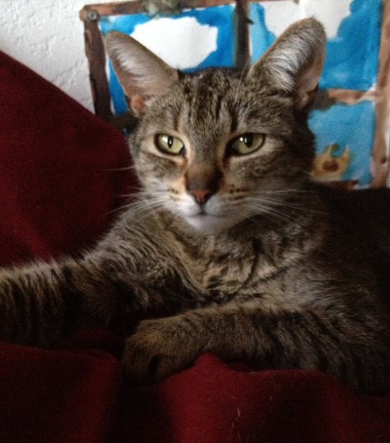 This is Ursula. We got her from a rescue organization for feral cats, and though she is nearly Ten now, she never grew much bigger than a kitten.  I don’t know anything about her parents.  I’m assuming Dad was a drifter.  A randy Lothario.  Probably a poster boy for the SPCA’s Spay and Neuter campaign.  Maybe a traveling litter salesman.  We can safely deduce he wasn’t fixed and he wasn’t a family man.