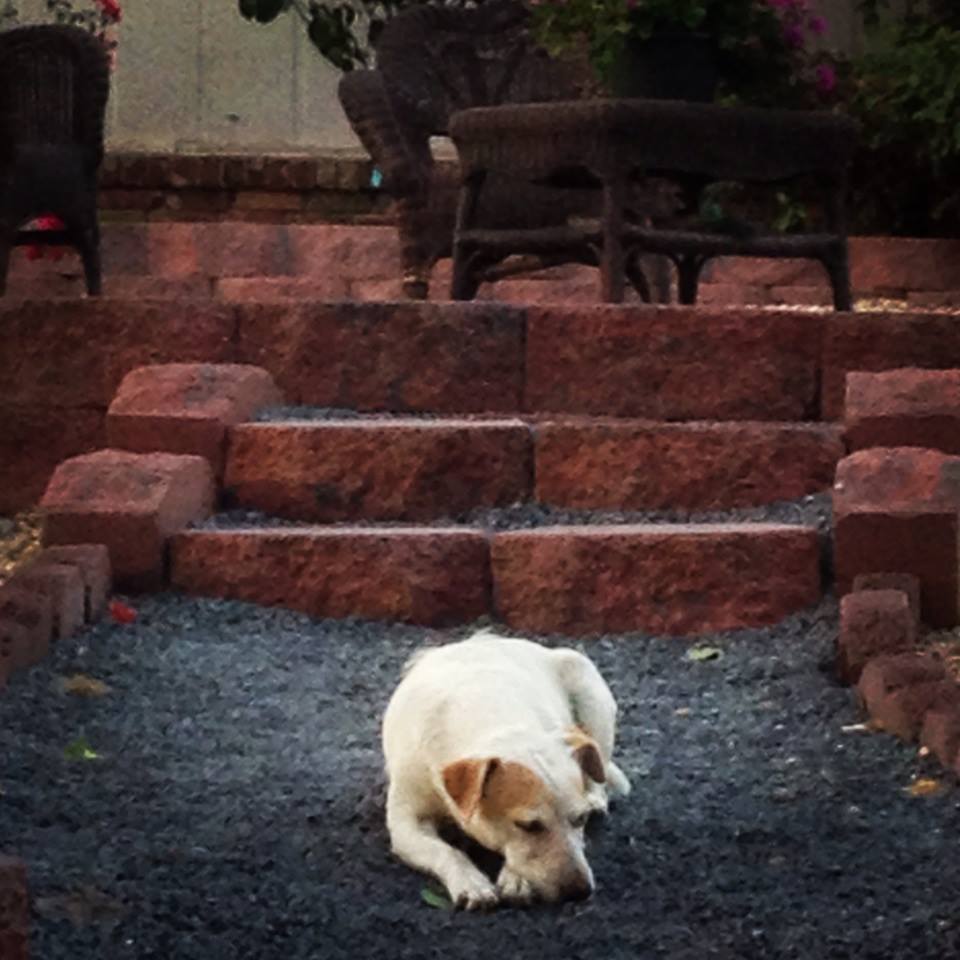 I finished my chores, circumnavigating the hole, and then I went to fetch my shovel to fill it. Angus ran circles around me as I worked, joyful and energetic, assuming I was having as glorious a time as he so obviously was. This is why it’s hard to stay mad at Angus. He is a gleeful dog.
